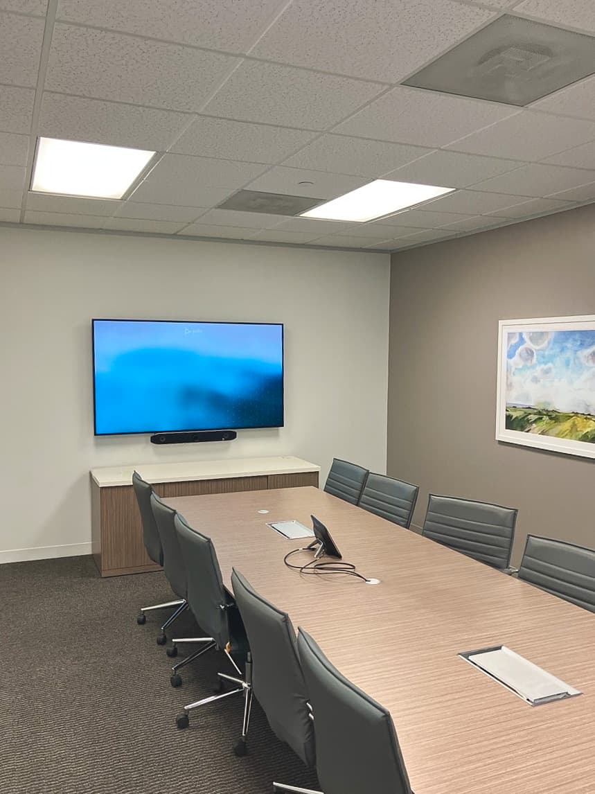 The primary goal was to replace their outdated systems with a modern, user-friendly HP | Poly video conferencing solution that could be implemented across multiple locations. To streamline implementation, RoomReady developed a standardized, customizable menu of AV solutions tailored to each room size and purpose. Poly video conferencing systems were chosen for their seamless integration with Microsoft Teams, ensuring that employees could use the familiar Teams interface without disruptions. RoomReady’s team also prioritized clean cable management and strategic camera placement to deliver a polished, user-friendly experience in every space.